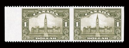 impression, o.g., n.h., extremely fine.Unitrade #119iv, 1925 20c Olive green, dry printing, retouched, exceedingly well centered example with retouched vertical line at top right spandrel, rich color, strong impression, o.g., n.h., extremely fine. (Image) Unitrade C$450.00