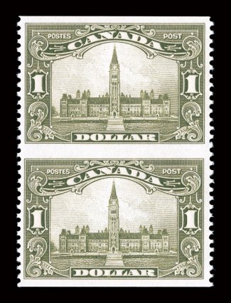 2296 nh 141c-45c 141c-45c, 1927 1c-12c Confederation, imperforate horizontally, complete set in vertical pairs, all but the 5c are top sheet-margin examples, exceedingly fresh, o.g., n.h., 12c