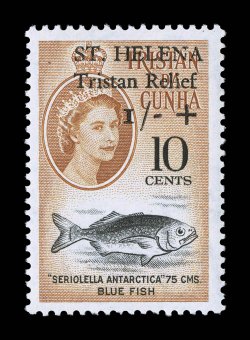 hinged, extremely fine (S.G. 171 var.)#B1 var., 1961 2 1/2c + 3p Tristan Relief semi-postal, broken "A" in "Helena" variety, exceptionally well centered single of this distinctive and scarce variety, o.g., lightly hinged, extremely fine (S.G. #171 var.) (Image) S.G. £1,200+