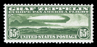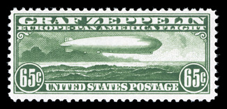 653 nhu C13 C13, 65c Graf Zeppelin, excellent centering within large margins, strong rich color, o.g., n.h., extremely fine 2006 PF certificate (XF 90).#C13, 65c Graf Zeppelin, excellent centering within large margins, strong rich color, o.g., n.h., extremely fine; 2006 PF certificate (XF 90). (Image) $425.00