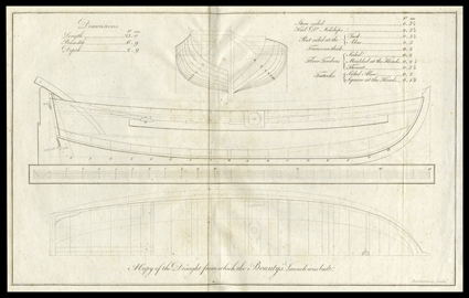 1279   A Narrative of the Mutiny on Board his Majesty's Ship Bounty... William Bligh. London, George Nicol, 1790. 4to, modern leather with banded and gilt spine. Three fold-out plates and one in-line plate. Some light foxing of plates and of a few interior pages, modern binding. With Risvold's label on modern pastedown. A nearly pristine copy, absolutely gorgeous. (imagea) (imageb) Est. $5,000-7,500