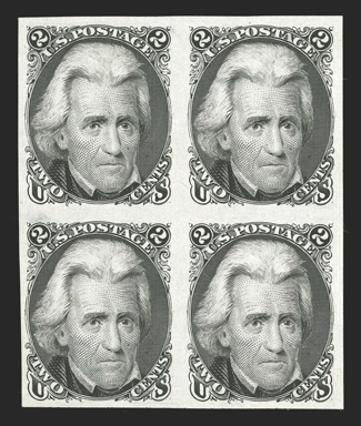 natural India paper flaws, one 15c with pinhole, otherwise a very fin#63P3-78P3, 1861-67 1c-90c plate proof on India cplt. in blocks of four, including #73P3, 74P3 and 77P3, each with large margins all around and bright fresh colors, a few minor natural India paper flaws, one 15c with pinhole, otherwise a very fine and most attractive set of proof blocks; #74P3 accompanied by a 1990 PF certificate. (imagea) (Image) $4,275.00