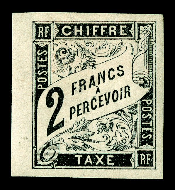 185 nh Yvert #TT14 ImageYvert #TT14, 1884 5Fr. Black postage due, seldom seen post office fresh mint example, four large margins, pristine o.g., n.h., extremely fine (Scott #J14a; $425.00 for hinged). (Image) for hinged €500