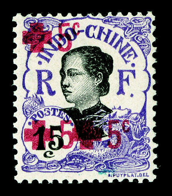 640 ng Yvert #92a ImageYvert #92a, 1919 "24 CENTS" Surcharge on 35c+25c Orphans, double "INDOCHINE", unused, very fine and scarce; signed Roumet (Scott #B10b; $875.00). (Image) €1,100