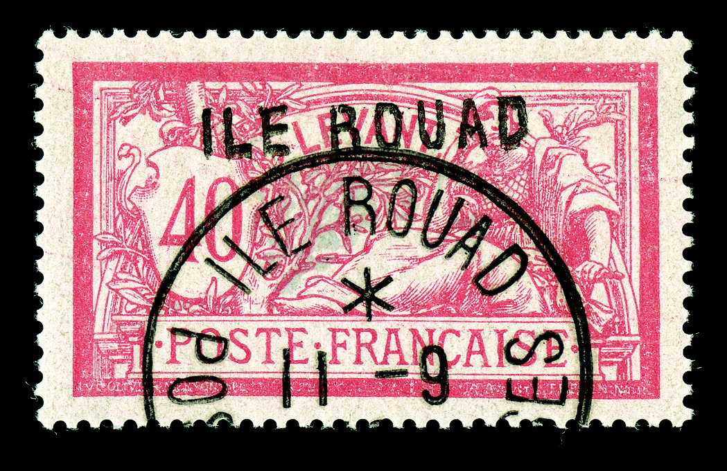 1016 O Yvert #3A-B ImageYvert #3A-3B, 1916 "ILE ROUAD" Overprint on 40c Red and pale blue and 50c Bister brown and lavender, the two unissued values cancelled to order as always by neat 9 November 1916 datestamps, very fine; 40c with 1999 Roumet certificate (Scott unlisted). (imagea) (Image) €1,400