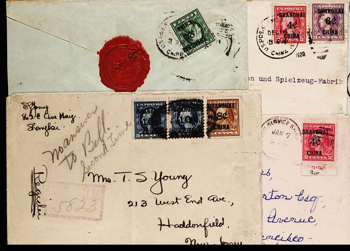 64 c K1/K6 #K1-6, Balance of the Offices in China covers, nineteen covers or cards and one front, eight are 2c Surcharge (#K1) usages, including four used on picture postcards and one used on the reverse of a law office corner card, five 4c Surcharge (#K2) usages include a pair, a plate number single, and one used from New York in 1923, others include a 4c and 6c (#K2, K3) on cover to Germany, 8c and 10c pair (#K4, K5) on registered cover to New Jersey and a single 12c (#K6) usage, condition a little mixed, mainly fine-very fine; a very useful lot. (Image) Est. 750-1,000