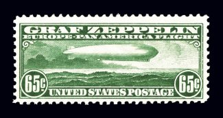 129 nh C13-15 image#C13-15, 65c-$2.60 Graf Zeppelins cplt., well centered, fresh colors, o.g., n.h., typical natural gum bends and skips, very fine. (imagea) (imageb) (Image) $2,525.00