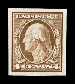 288 nh 342 image#342, $1.00 Violet brown, a sensational mint single in a quality that has few peers, being flawlessly centered amid exceedingly large margins, in addition its color could not be more deep and luxuriant, razor-sharp impression on crisp paper, even its perforations are unusually full and even, unblemished o.g., n.h., an extremely fine gem; a stamp worthy of placement in the finest collection; 1999 PF certificate and a 2005 PSE certificate (XF-Superb 95; SMQ $8,450.00); this is the highest grade awarded to a never hinged #342; ex-"Piedmont", "Beckley". (Image) $1,200.00