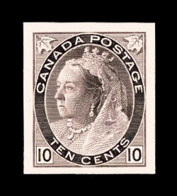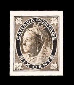787 P Unitrade #66P-73P imageUnitrade #66P-73P, 1/2c-10c Queen Victoria "Maple Leaf", plate proofs on India on original card backing cplt., well-matched set with large even margins, fresh bright colors, extremely fine; prior to the American Bank Note Co. archives sale plate proofs of this issue were of the greatest rarity with only a few known, some are still extremely scarce with only 171 of the 8c Orange and 235 of the 10c Brown violet, these figures being exceptionally small compared with the Jubilee issue for example. (imagea) (imageb) (Image) Unitrade C$1,950.00