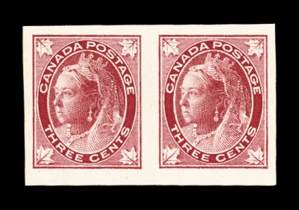 799 P 78P image#78P, 3c Carmine "Numeral", large die proof on wove paper, showing the full die sinkage measuring 65x80mm, "F-113" die number and "American Bank Note Co. Ottawa" inscription below, wonderfully fresh and attractive with strong color and excellent impression, extremely fine and rare; Unitrade does not list specific die proofs but notes that a few examples exist with a value of C$4,000.00-C$5,000.00, depending on the size of the proof. (Image) Est. 1,500-2,000