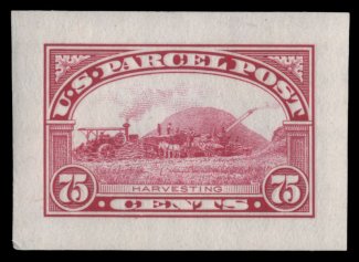 978 P Q1P2-12P2 image#Q1P2-12P2, 1c-$1.00 Parcel Posts, small die proofs on rather thick proof paper cplt., an enormously rare complete set of these seldom offered proofs, most margins are 3mm-4mm wide, all are facially attractive though most have small thin spots, apparently being affixed to some sort of cards with a tenacious gum, somewhat similar to Roosevelt proofs but the paper being softer and more easily damaged, fine-very fine appearance; Scott highly values both the small die proofs and the "Panama-Pacific" small die proofs the same, and properly so, as we have only seen one set of each and both types of small die proofs are probably scarcer than the large die proofs; a highly important proof set of the 20th century for either the proof or Parcel Post specialist; C.A. Huston, designer; J. Eissler, H.L Charlton, M.B, Baldwin, C.M. Chalmers & L.S. Schofield, vignette engravers; 1971 PF certificate for the 1c value. (imagea) (Image) $14,400.00