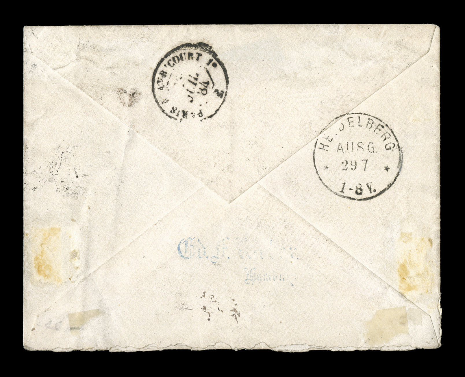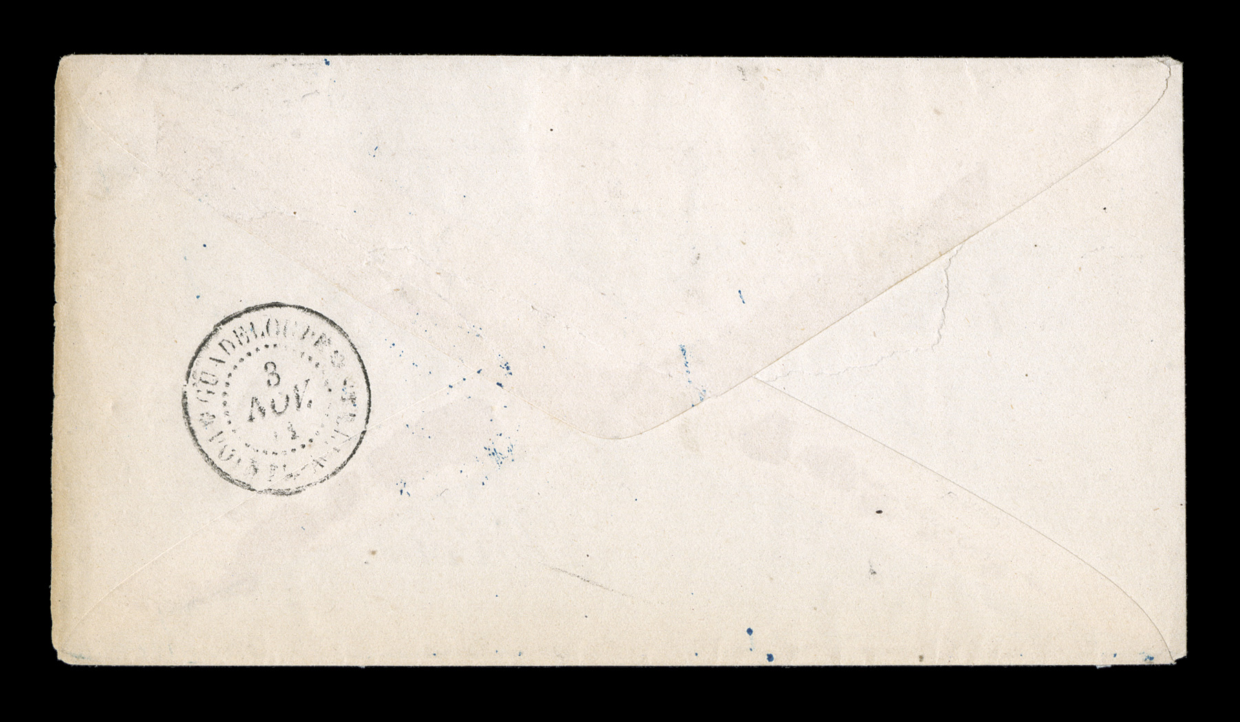 of the island of Basse Terre, stamp tied by black GuadeloupeCFrench Colonies Yvert #41, 1879 15c Blue, Ty. II, single with well clear to large margins on another small 1885 cover to Pointe-a-Pitre from Capesterre located on the east coast of the island of Basse Terre, stamp tied by black "Guadeloupe/Capesterre(G.P)/7 Juin 85" double-circle c.d.s. with similar strike at left, backflap missing and repaired corner to cover, not affecting the stamp or markings, fine; the "G.P" designation in the cancel was inserted to differentiate this village from the town of the same name on the island of Marie Galante; very rare with very few examples known to exist. (imagea) (Image) Est. $750-1,000