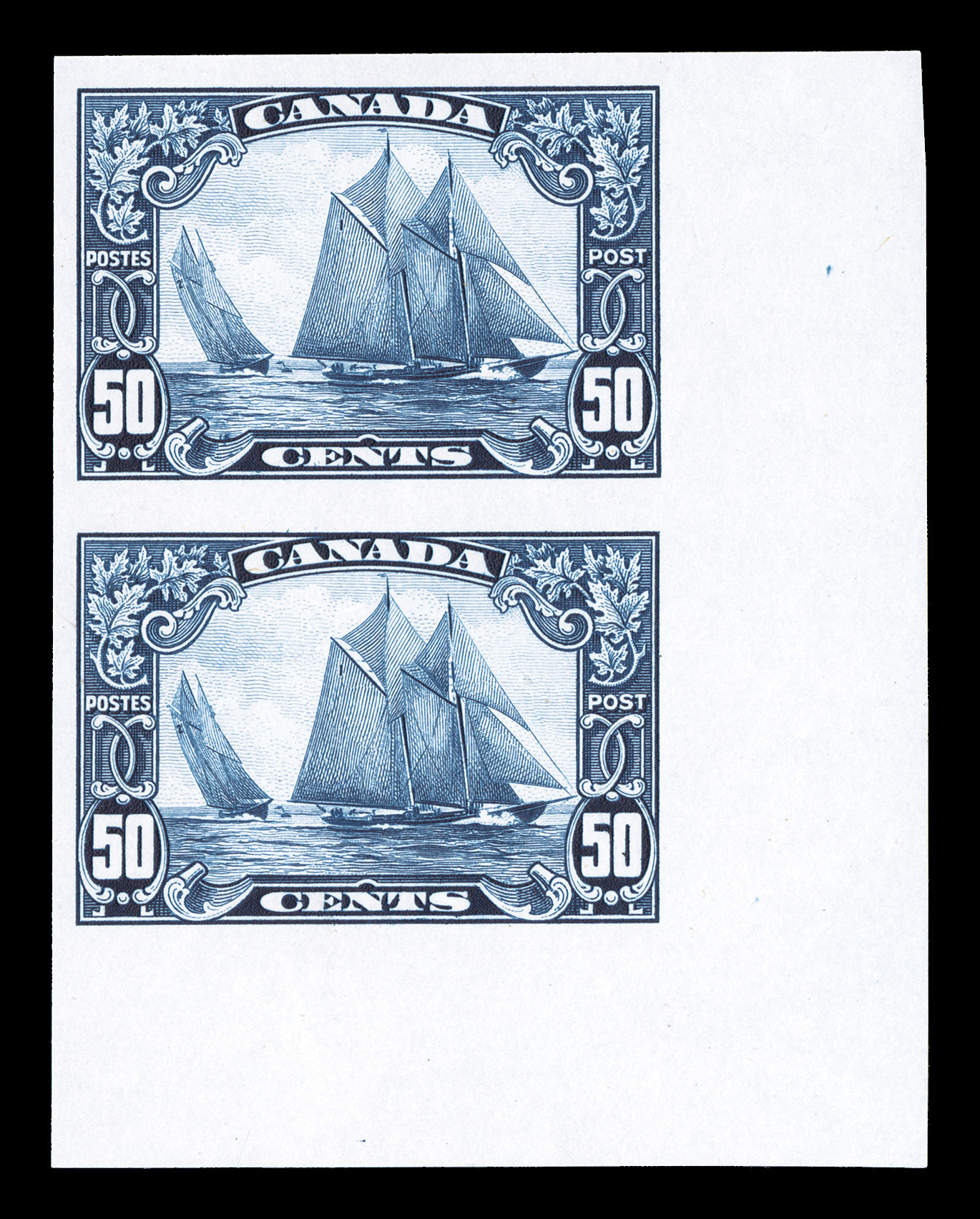 paper imaginable, o.g., n.h., extremely fine (Unitrade C$600.00).#111, 1925 5c Dark blue, a highly desirable mint example, being impeccably well centered amid uncharacteristically large margins, outstanding color and impression on the whitest paper imaginable, o.g., n.h., extremely fine (Unitrade C$600.00). (Image) $300.00