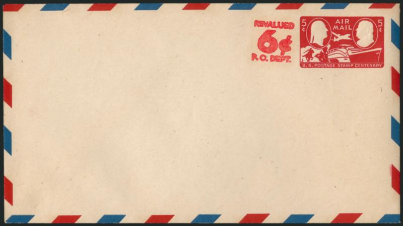 931A c Image6c on 5c Carmine on White, Air Post entire (UC23, unlisted in UPSS). Size 13, knife 78, watermark 41, unused, bright color, Extremely Fine and scarce, unlisted in UPSS but well-known to collectors of these issues, with 2009 P.F. certificate (Image)
